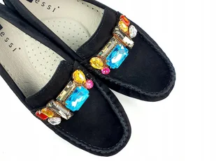 Nessi 19512 mokasyny czarne zamsz z kamieniami 38