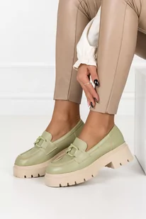 Pistacjowe mokasyny skórzane na platformie z łańcuchem PRODUKT POLSKI Casu 20127-41