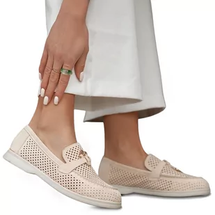 Półbuty Eleganckie Damskie Zamszowe Mokasyny Ażurowe Permani Alisa Beżowe 40