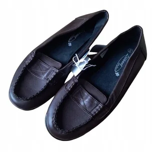 Półbuty mokasyny damskie 40 brązowe zewnątrz skóra ekologiczna, wkładka skóra naturalna trochę zagniecone