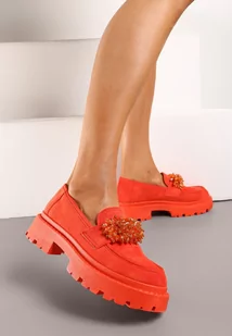 Pomarańczowe Mokasyny z Aplikacją z Biżuteryjnych Koralików Viatalia