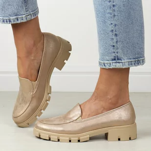 są idealnym wyborem na wiosnę, jesień oraz chłodne lato. Ich cholewka wykonana z wysokiej jakości materiału skóropodobnego w subtelnym odcieniu różowego złota nadaje im delikatny i kobiecy wygląd. Wygodne wsuwanie oraz okrągły nosek sprawiają, że te buty są łatwe w noszeniu i idealne na codzienne spacery czy spotkania ze znajomymi. Wkładka wewnętrzna z miękkiej skóry naturalnej gwarantuje komfort i przyjemność noszenia przez cały dzień, chroniąc Twoje stopy przed dyskomfortem. Solidny, masywny spód oraz niski płaski obcas zapewniają stabilność i wygodę podczas