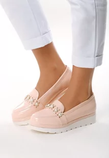Różowe mokasyny zdobione łańcuszkiem Kuens -40