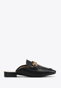 Damskie mokasyny z naturalnej skóry – elegancja i komfort w jednym Odkryj wyjątkowe mokasyny typu mule, które łączą klasykę z nowoczesnym stylem. Wykonane z naturalnej skóry, zachwycają miękkością i perfekcyjnym dopasowaniem do stopy. Skórzana wkładka oraz wyściółka zapewniają komfort noszenia przez cały dzień, a gumowa podeszwa gwarantuje elastyczność oraz doskonałą przyczepność do podłoża. Kwadratowy nosek i dekoracyjna klamra nadają im szyku, a odkryta pięta sprawia, że są niezwykle wygodne i stylowe. Dla kogo? Jeśli cenisz połączenie wygody i elegan