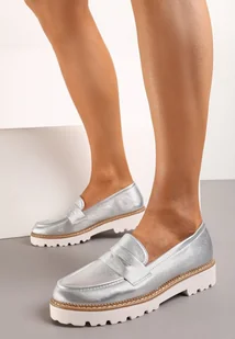Srebrne Casualowe Mokasyny na Płaskiej Podeszwie z Ozdobnym Paskiem Apahida