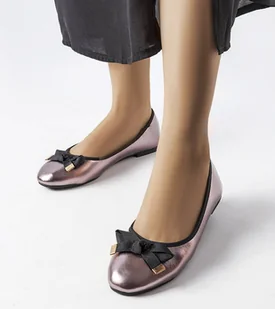 Srebrne metaliczne balerinki z kokardką Boro-37