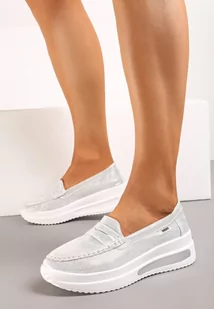 Srebrne Mokasyny na Platformie z Imitacji Zamszu Nossabel