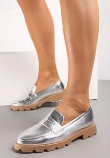 Srebrne Płaskie Mokasyny z Klasycznymi Przeszyciami Tyshell