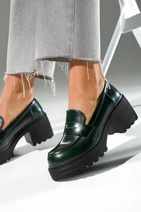 Zielone mokasyny damskie na klocku z bieżnikowaną platformą Casu JW24X8-G-NO-39