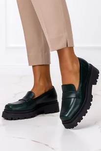 Zielone mokasyny skórzane damskie na bieżnikowanej platformie produkt polski casu 1691-no-38