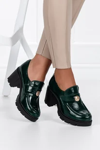Zielone mokasyny skórzane damskie z ozdobą lakierowane na słupku PRODUKT POLSKI Casu 20155-38