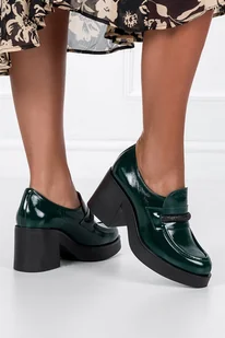 Zielone mokasyny skórzane lakierowane damskie na słupku z cyrkoniami produkt polski casu 20157-no-40