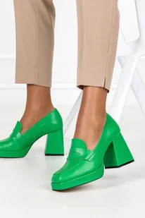 Zielone mokasyny skórzane na klocku PRODUKT POLSKI Casu 2413-167-37