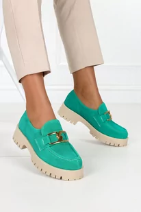 Zielone mokasyny skórzane na platformie ze złotym łańcuchem PRODUKT POLSKI Casu 20089-39