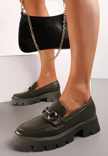 Zielone Mokasyny z Ozdobną Klamerką na Grubej Podeszwie Neizia