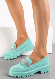 Zielone Mokasyny z Paskiem z Cyrkonii i Grubej Podeszwie Degase