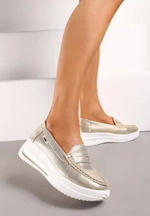 Złote Mokasyny na Platformie z Imitacji Zamszu Nossabel