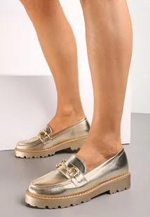 Złote Mokasyny z Imitacji Zamszu i Ozdobną Klamerką Zanita