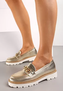 Złote Mokasyny z Łańcuszkiem i Grubą Podeszwą Ferinla