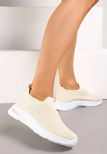 Beżowe Buty Sportowe ze Skarpetkową Cholewką do Kostki Railette