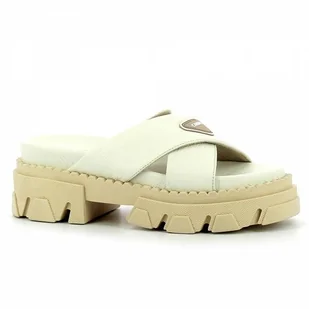 BEŻOWE SKÓRZANE KLAPKI DAMSKIE NA PLATFORMIE