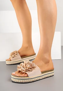 Beżowe Klapki Vices Ozdobione Kwiatową Aplikacją 3D Koviznne