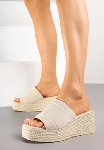 Beżowe Klapki na Koturnie z Plecionki Zdobione Tłoczeniami Pasilissa