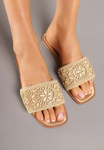 Beżowe Klapki Ozdobione Koralikami Tatollian
