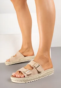 Beżowe Klapki Ozdobione Plecionką z Juty i Klamrami Calisses