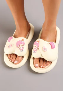 Beżowe Klapki Piankowe z Ozdobnymi Aplikacjami Ihigena