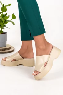 Beżowe klapki skórzane na platformie PRODUKT POLSKI Casu 40355