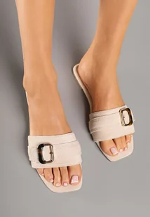 Beżowe Klapki z Klamrą i Kwadratowym Noskiem Gavrina