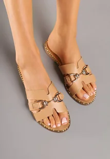 Beżowe Klapki z Ozdobnymi Wycięciami i Metaliczną Aplikacją Oleriva