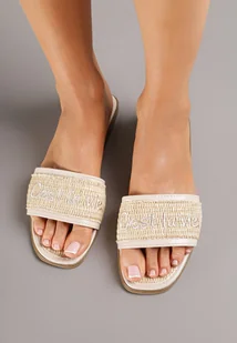 Beżowe Plecione Klapki z Napisami Melasesa