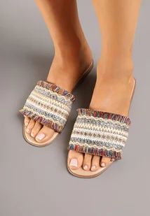 Klapki z Frędzlami i Cyrkoniami Ridiellae to must-have w każdej modnej garderobie! Z ich wyjątkowym, dekoracyjnym wykończeniem, te klapki dodadzą charakteru każdej letniej stylizacji. Dzięki uniwersalnemu designowi sprawdzą się zarówno w codziennych, casualowych zestawieniach z lekką sukienką, jak i na eleganckich imprezach w połączeniu z cygaretkami oraz oversizeową koszulą. Niezależnie od okazji, Ridiellae to obuwie, które z pewnością przyciągnie spojrzenia i podkreśli Twój niepowtarzalny styl!