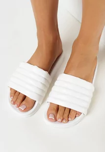 Białe Basenowe Klapki z Pikowanym Paskiem Mezia
