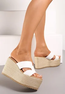 Białe Klapki Boho na Koturnie z Platformą Ozdobionych Plecionką Vilari