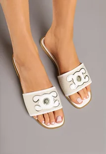 Białe Klapki z Metaliczną Ozdobą Ellirian