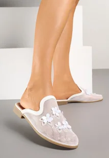 Białe Siateczkowe Klapki Typu Mule z Kwiatami 3D Vilmoi
