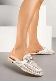 Białe Tweedowe Klapki Mule z Metaliczną Aplikacją Jolritia