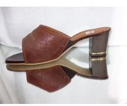 Skórzane brązowe klapki męskie Bardzo modne, wygodne i oryginalne damskie klapki produkcji polskiej wykonane w całości z wysokiej jakości skóry naturalnej w kolorze brązowym. Fason tych klapków jest niezwykle kobiecy i elegancki co pokazuje, że producent tych klapków w idealny sposób łączy modny fason z bardzo wysoką dbałością o detale i bardzo wysoką jakością wykonania . Klapki są przeznaczone dla pań o szerszych stopach , od wewnętrznej strony mają wszytą gumkę co bardzo ułatwia założenie tych butów ale też sprawia, że noga wygląda w nich smuklej i elegancko. Posiadają one bardzo wygodny i grubszy obcas, którego wysokość wynosi 6 cm co sprawia, że są one bardzo stabilne i wygodne dzięki czemu noga się w nich nie męczy, a oprócz tego idealnie pasują do każdej kreacji wieczorowej (posiadają tęgość H). Podstawowe parametry: