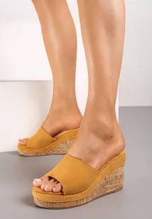 Brązowe Klapki z Imitacji Skóry na Koturnie Gadina