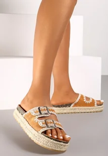 Brązowe Płaskie Klapki z Regulowanymi Klamrami Venadea