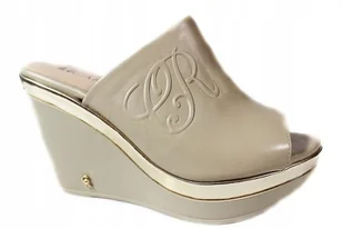 Carinii klapki damskie B8727-R77 beżowy skóra koturn eleganckie modne r.39