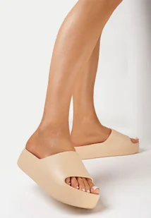 Ciemnobeżowe Jednolite Klapki z Piankowego Materiału Arslain