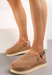Ciemnobeżowe Klapki w Typie Chodaków na Grubej Podeszwie Jrea