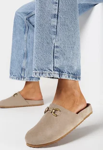 Ciemnobeżowe Klapki z Imitacji Zamszu i Klamerką Carva