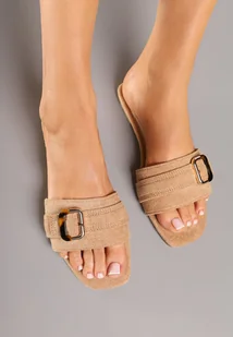 Ciemnobeżowe Klapki z Klamrą i Kwadratowym Noskiem Gavrina