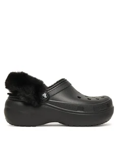 Crocs Klapki Classic Platform Fuzz Lined Clog 212854 Czarny
