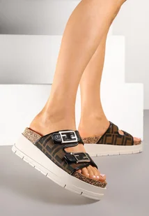 Czarne Klapki na Grubej Podeszwie z Geometrycznym Wzorem Rinselia